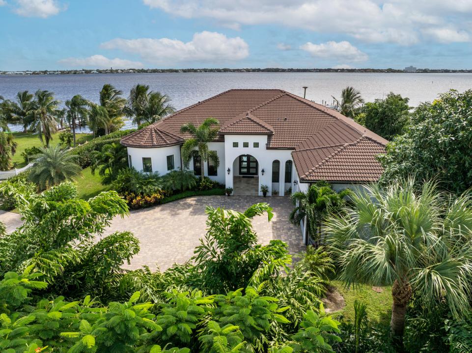 FIRST TIME ON MARKET! Premier waterfront location built in 2020. Modern-Mediterranean home close to downtown Jensen Beach and Stuart. Spectacular southern exposure and wide-water view. Direct ocean access minutes from the St. Lucie Inlet. No low bridges - a boater's dream. High coffered ceilings, four spacious bedrooms plus a den, four full baths, and a cabana bath designed for everyday comfort and effortless entertaining. Gourmet chef's kitchen, top notch appliances, quartzite counters, custom cabinetry, walk-in pantry. Private waterfront with covered dock, two high-speed boat lifts, personal watercraft lift, and lowered platform for kayaks and paddle boards. Room for your yacht or sport-fish. Heated saltwater pool, spa tub, sun shelf, and iridescent glass tile. 3-car garage, impact windows & sliders, huge covered patio, backup generator, 1,000 lb in-ground propane tank. Perfect balance of comfort, convenience, and breathtaking waterfront views. Don't miss your chance to own it!