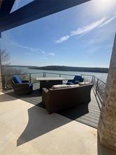 New deck just added to patio with stairs to lake. Custom waterfront home with inground pool and spa and spectacular views. Open floor plan with vaulted beamed ceilings, multiple living areas. Sliding glass doors across back of home. Roll out shades on patio. Kitchen features professional Monogram appliances and large center island with walk through pantry. Isolated master bedroom with access to backyard. Two story master closet with ample rod space, and upstairs office or workout area. Gameroom off of entry has wet bar and upstairs loft with private bathroom. Concrete drive to lake. Dock features boat slip with lift and 3 sea doo dry docks. Large patio with outdoor fireplace and kitchen, perfect for entertaining. Get ready for lake season! Will sell furnished with few exclusions or will sell partially furnished. Whichever works best!