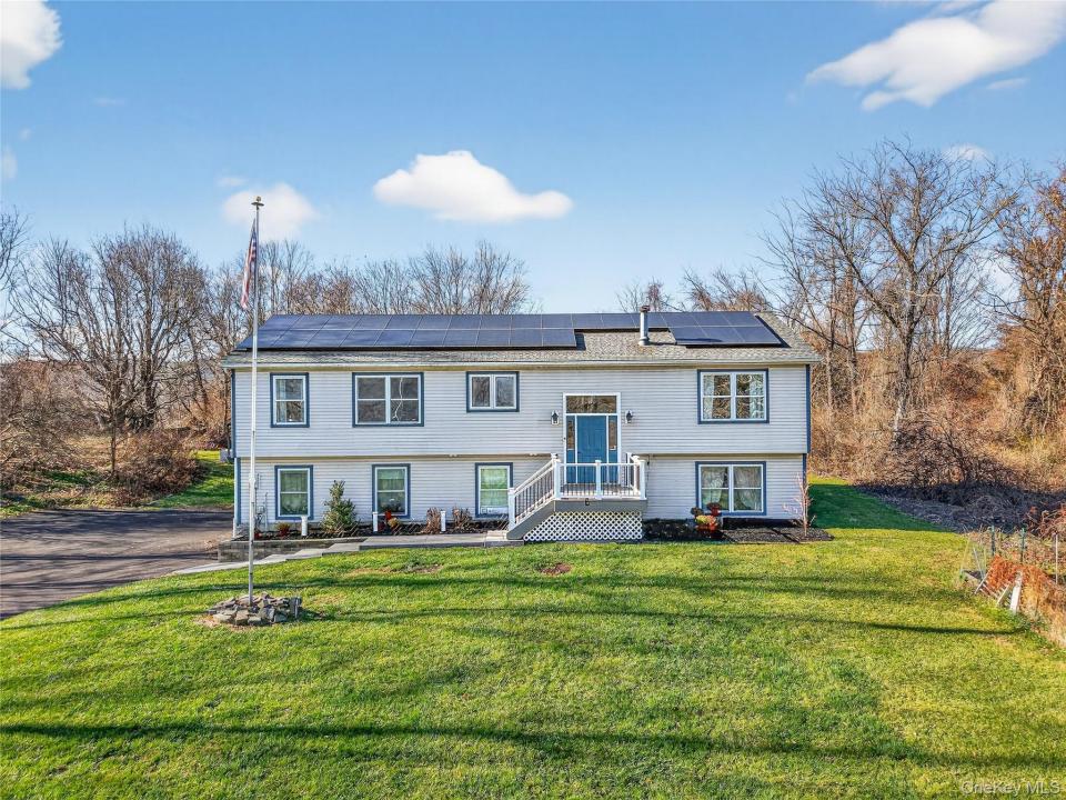 Downstairs the magic continues, with your very own bar & wine cellar area, 8-9' ceilings give it a very open feeling-Must see to appreciate- with 1/2 bath and walk out to your lovely, paved patio. Washer/dryer area and then to your handicap accessible apartment. With 8 1/2' ceilings, open concept living room & full kitchen , 1 Bedroom w/ en suite full bathroom & walk in closets. Back yard boasts enchanting pergola sitting area, fire pit & unique property lay out which abuts to County Owned Property for added privacy. Newly paved driveway sets you far from the road, huge front yard . Newly pointed front walk way for ease of access and Handicapped accessible apartment entrance brings you right in. Two EV charging ports and 50year roof and Solar Panels-which are leased-installed Dec. 2022. 1250 gal Septic recently pumped , water tested & passed ready for you. 1 mile to Patterson Metro North , minutes to shops, I84, skiing , parks, walking/bike trails, town park with lake, too much to list! Come home to this hidden gem nestled in beautiful Putnam County.