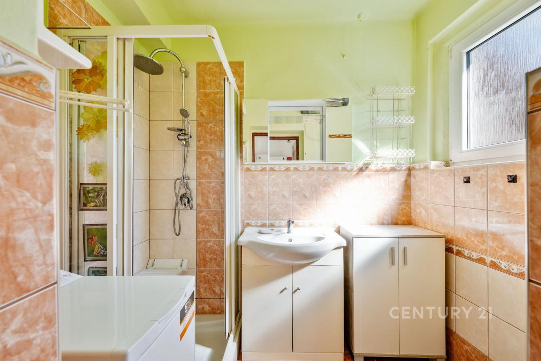 Dům o zastavěné ploše 90 m² je postaven ze smíšeného zdiva a nachází se na oploceném a členitém pozemku o výměře 424 m². V přízemí, kde je podlaha keramická dlažba, najdete obývací pokoj s krbem, na který navazuje veranda se vstupem na pozemek za domem, dále prostorná kuchyně, která vede na uzavřený dvorek s kůlnou a vraty do ulice, koupelna se sprchovým koutem a s WC a schodiště do obytného podkroví, kde najdete pokoj, ložnici, samostatné WC, spíž a dvě komory.
