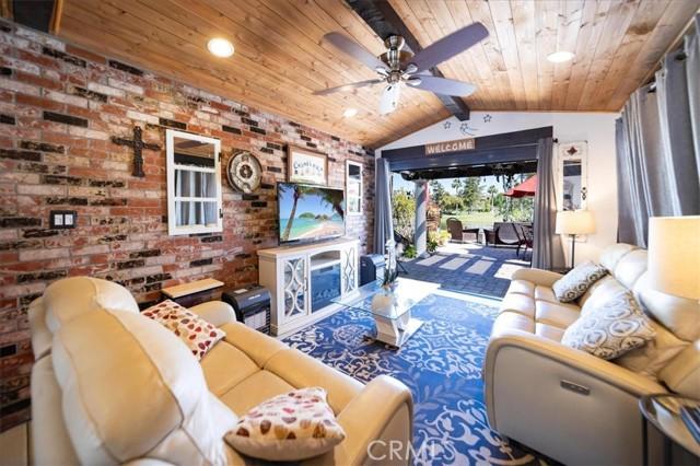 Casablanca is a truly one-of-a-kind lot within the resort, offering an exceptional blend of luxury, functionality, and outdoor living. The expansive kitchen area is a standout feature, complete with gorgeous granite countertops, beautifully crafted cabinetry, three additional beverage refrigerators, and a full-size residential refrigerator conveniently located next to the stove. A large serving island and a separate island/bar area provide the perfect setup for entertaining family and guests. A custom double-screen entry with remote-controlled screens welcomes you into a thoughtfully designed layout that includes a fully screened-in office space and a spacious family room. From here, enjoy tranquil views of the pond and your outdoor living area. Additional remote screens open seamlessly to the RV area and backyard, creating effortless indoor-outdoor flow. The rear of the property overlooks a peaceful pond with water feature and the golf course, delivering a true resort-style atmosphere. Situated on a desirable corner lot, this property offers the added benefit of extra parking—an uncommon and highly sought-after feature within the resort. Located in the highly desirable Rancho California RV Resort, a gated and 24/7 guard-controlled community, residents enjoy access to a 14-hole executive golf course (free for owners with unlimited use), 5 pools and multiple jacuzzi areas, tennis courts, pickleball courts, dog park, horseshoe lawn, laundry facilities, hiking trails, clubhouse, on-site restaurant, and market. HOA includes water, sewer, trash, and common area maintenance. This versatile property allows for full-time living, vacation use, or rental income potential. Enjoy peace, privacy, and resort-style living just minutes from Temecula Wine Country, with convenient access to San Diego, Oceanside, and Palm Springs. No age restrictions. Financing available. Schedule your private showing today and experience this hidden gem for yourself.